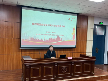 陈京春以《新时期国家安全环境与安全形势分析》为题,结合最新国际地缘政治形势与国家安全政策精神,讲述当下我国安全环境现状、存在的挑战,讲座紧扣当下的俄乌局势、巴以冲突等现实国际问题展开,引起在场师生的广泛关注。