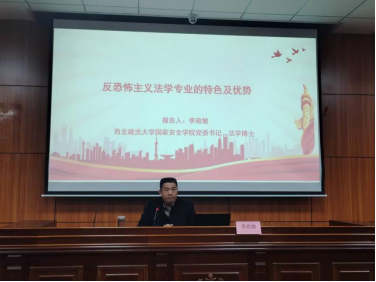 座谈会结束后,李政敏为法学系师生作了题为《反恐怖主义法学专业的特色及优势》的讲座,他全面系统介绍了西北政法大学首创反恐怖主义法学专业的缘起、学科定位、研究对象、学术成果,使与会师生对这一全新学科领域产生浓厚兴趣。