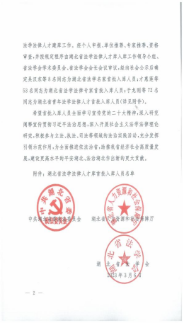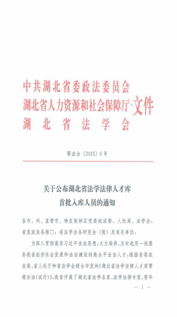 近日,中共湖北省委政法委员会、湖北省人力资源和社会保障厅、湖北省法学会联合印发《关于公布湖北省法学法律人才库首批入库人员通知》,我校马克思主义学院安军博士入选湖北省青年法学法律人才,成为首批入库人员。