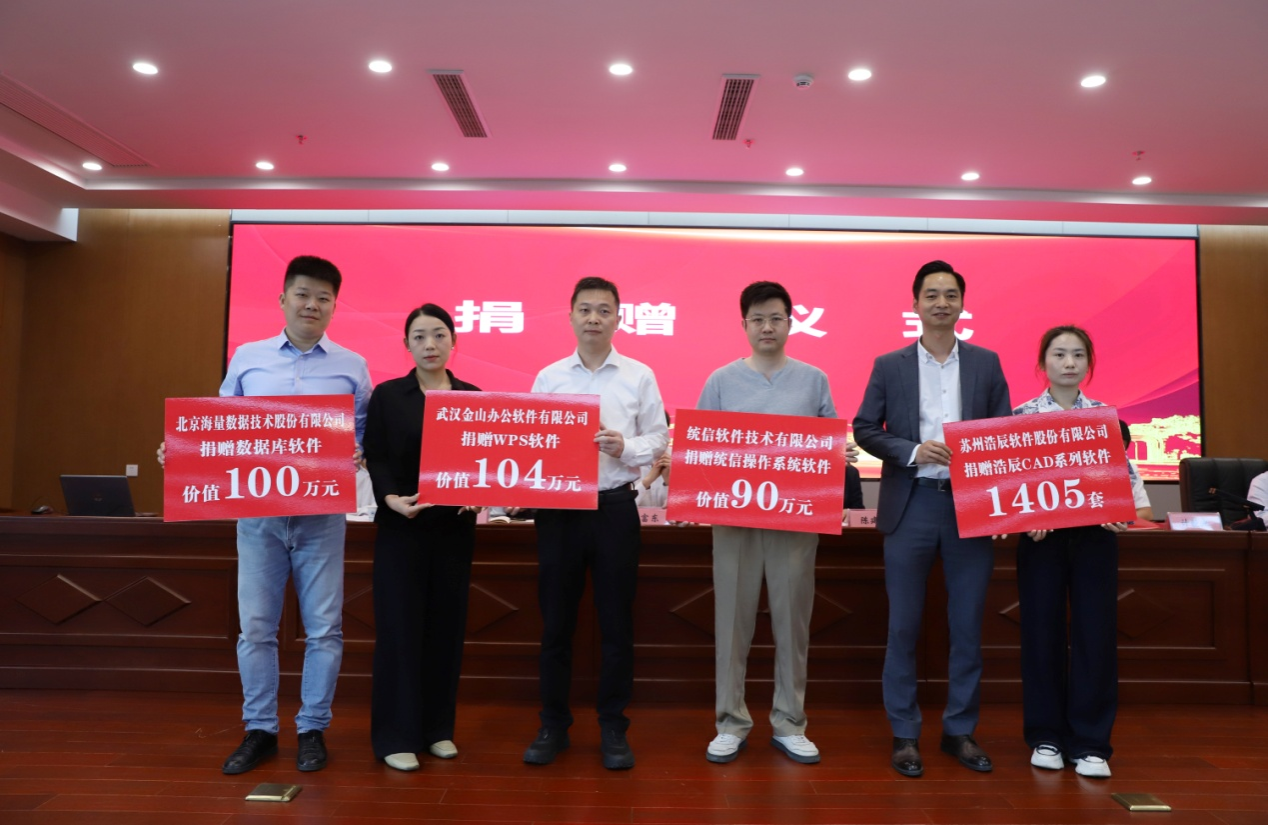 捐赠一批正版软件。省版权保护中心产业发展部邓军、省版权保护中心版权服务部李思做、省版权保护协会副秘书长黄继墨分别为鉴黄师