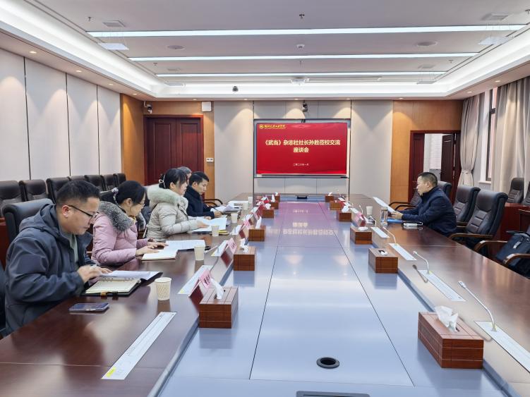 座谈会上,孙胜社长详细介绍了《武当》杂志的办刊历史、刊物特色及近年来取得的成果。随后,黄慧、龙丽群、杨立志、卫怡分别围绕学校科研工作机制、学报编辑经验、《武当》杂志未来发展方向以及青年讲师学术发表需求等方面展开深入交流。