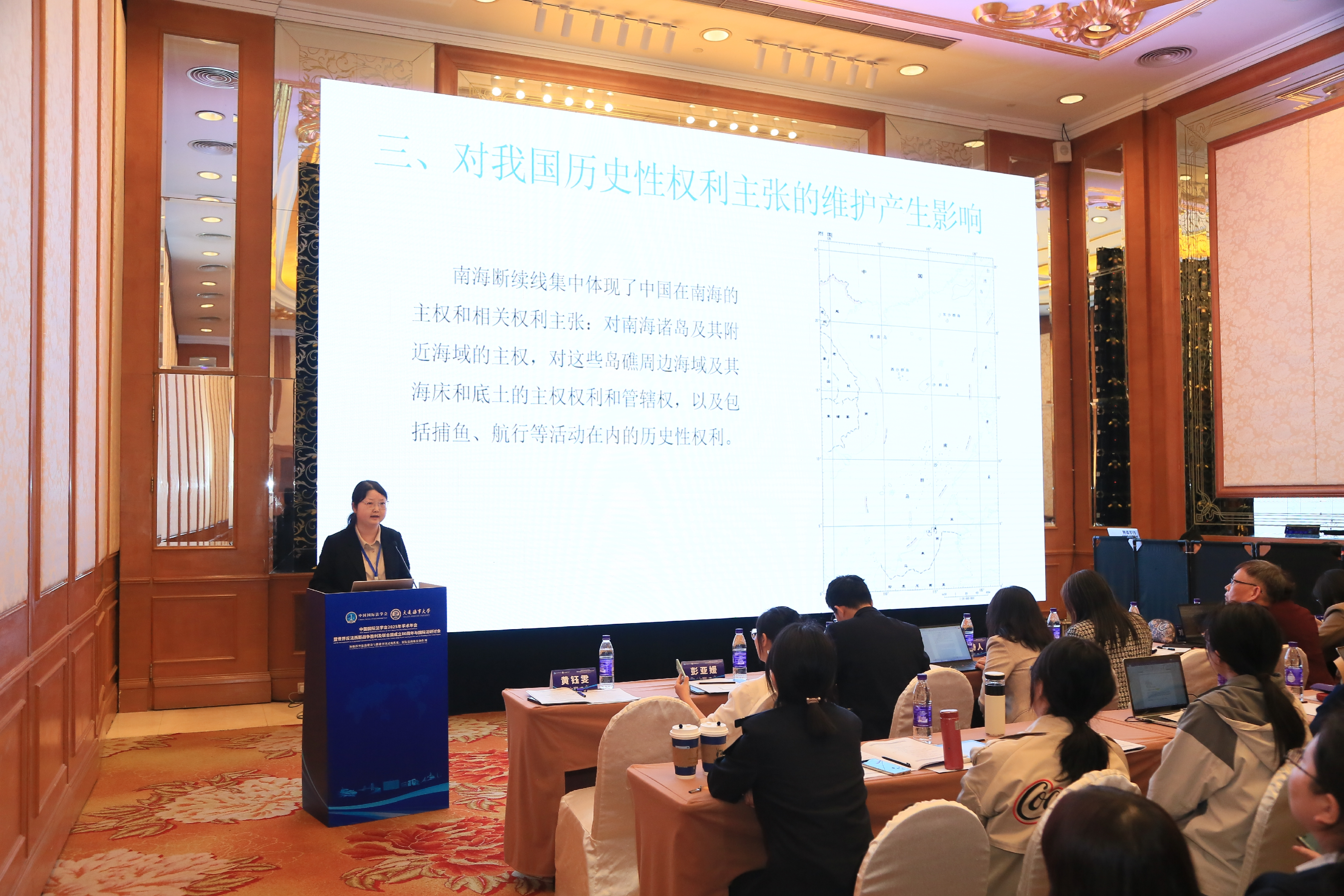 黄钰雯博士应邀出席年会,并在“议题三:国际海洋法和极地法”分议题研讨会上作题为《美国航行自由行动对南海历史性权利的影响与对策》的专题发言。黄钰雯博士从国际法视角切入,系统分析了美国在南海的“航行自由行动”对我国历史性权利主张的认定和维护所产生的影响,并从维护我国在南海的历史性权利的角度出发,对历史性权利在认定标准的建构、话语叙事和权利实践等方面进行反思并试图提出相应的对策。