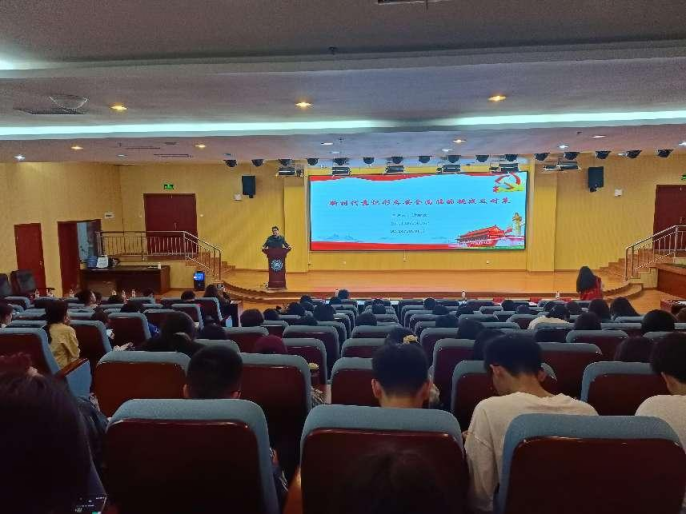 会议最后,由人文学院分党委书记计毅波老师就“新时代意识形态安全面临的挑战及对策”作专题讲座,详细地说明了意识形态的含义及其特征、如今大学生面临的挑战和问题及怎样采取有力措施切实维护意识形态安全等内容。