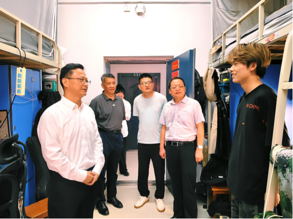 “同学来校顺利吗?家住哪里呀?在校有什么困难吗?一进宿舍,陈建平便与学生们亲切交谈。他耐心询问同学们的家乡、到校感受和适应情况,在轻松交流中洞察学生思想动态,同时还仔细检查宿舍设施,保障学生生活舒适安全。