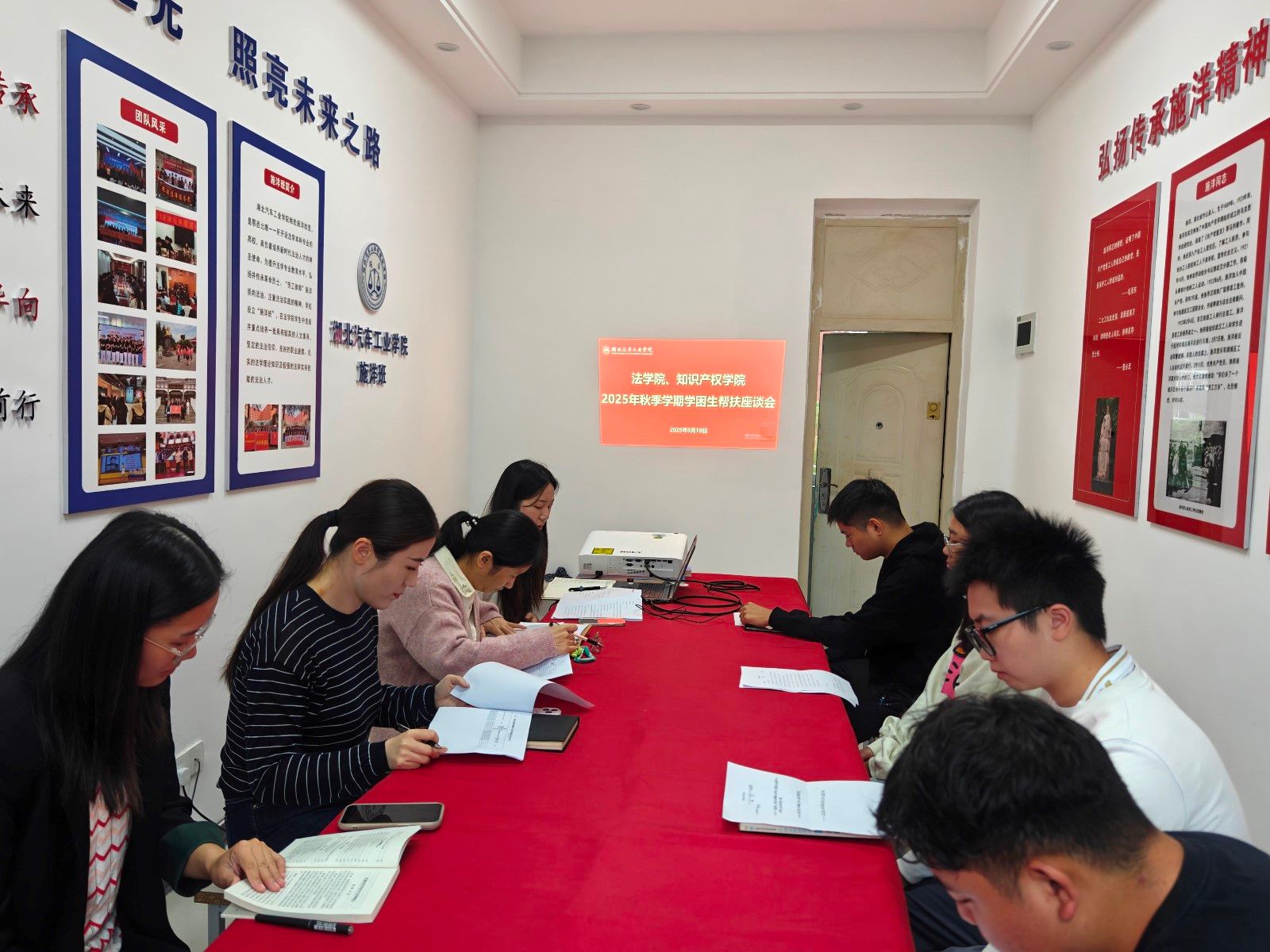 在3415会议室召开学业帮扶座谈会,旨在分析学生学业情况,制定帮扶措施,助力学生进步。学院党委副书记李童、副院长成继平、学工办主任郭慧、辅导员于海莹及相关班主任、学生代表参会。