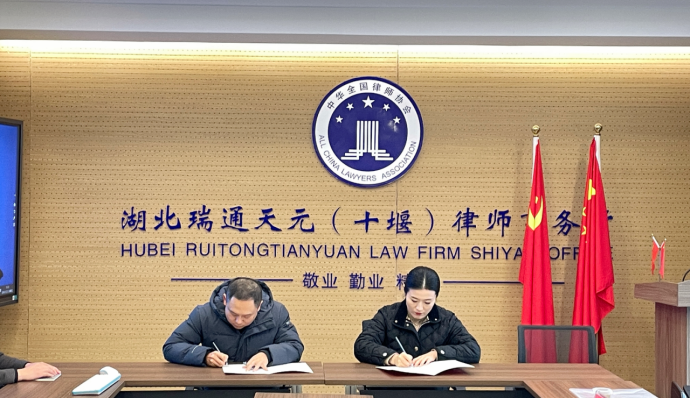 党委副书记李童一行赴湖北瑞通天元(十堰)律师事务所访企拓岗,签订优质就业基地协议并授牌。